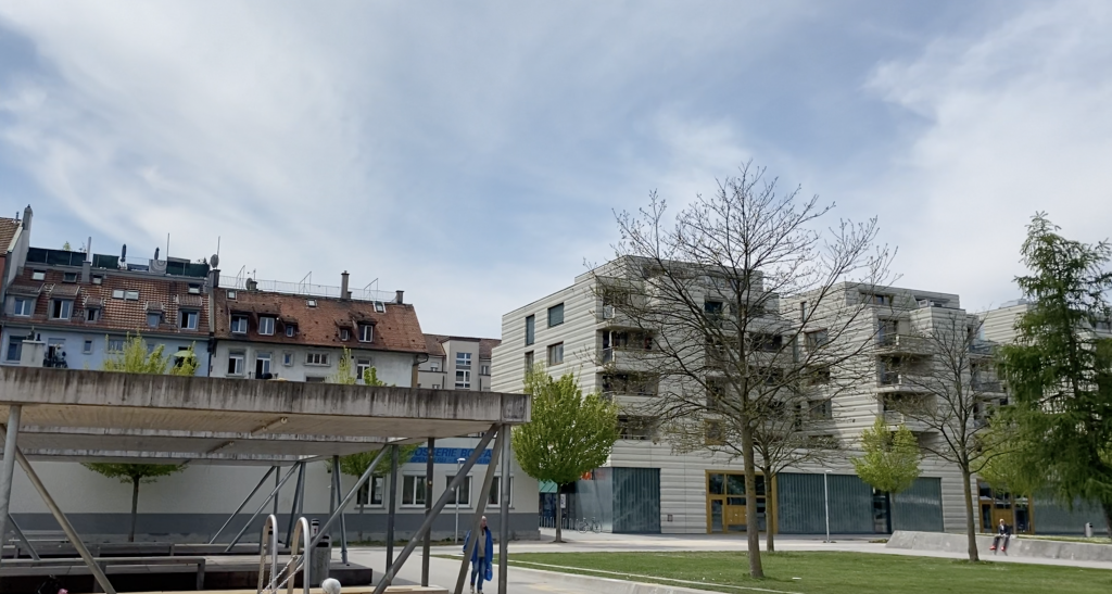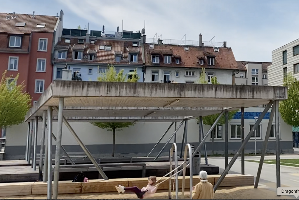 - Der Park ist eingekesselt von der Oberstufe Albisriederplatz, der Alterswohngenossenschaft Hardau II, den Hardaublöcken der Überbauung Hardau II, und noch weiteren Häusern.