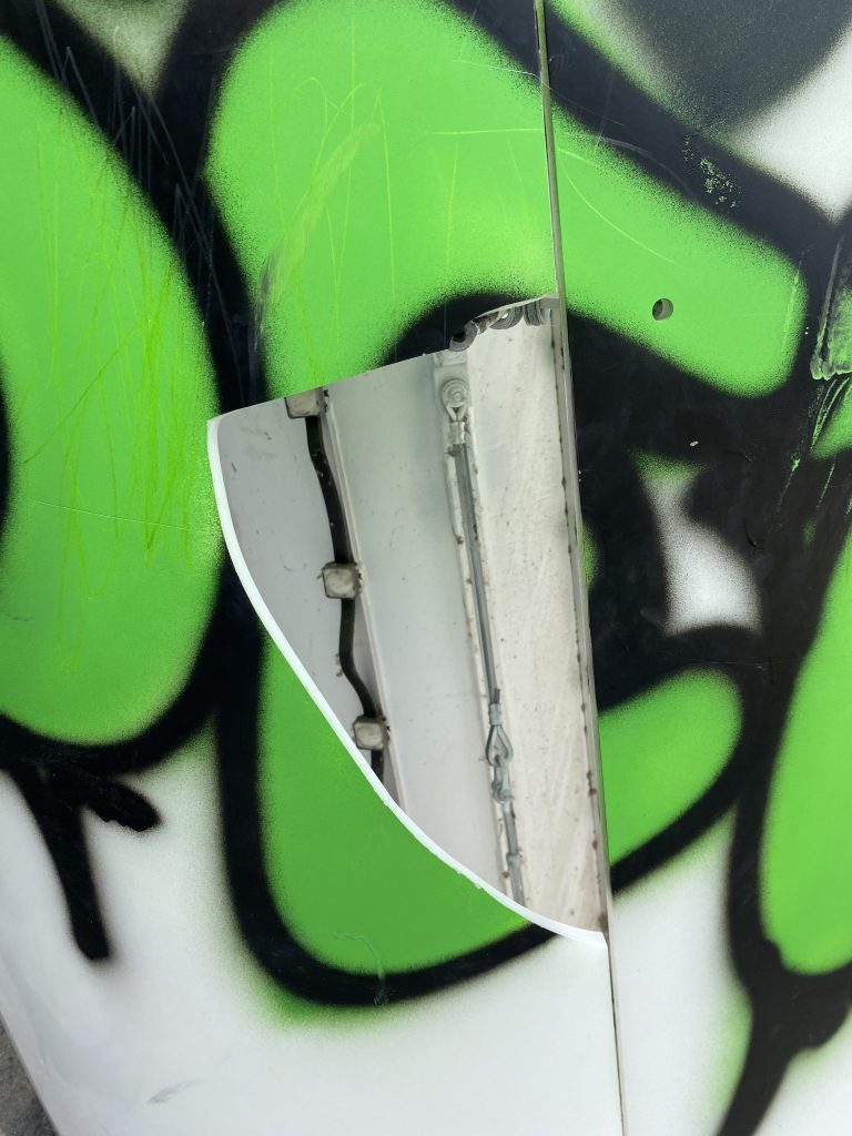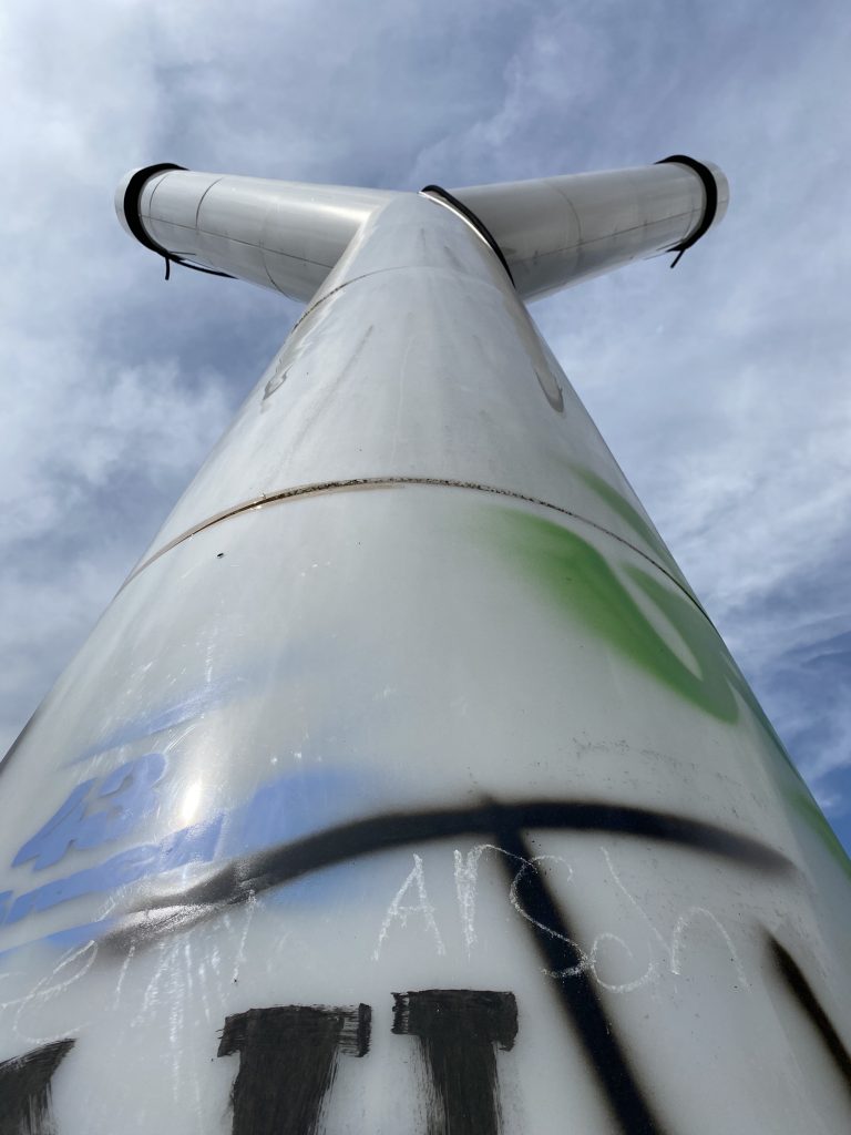 - Das Kunstwerk ist beschädigt und besprayt.