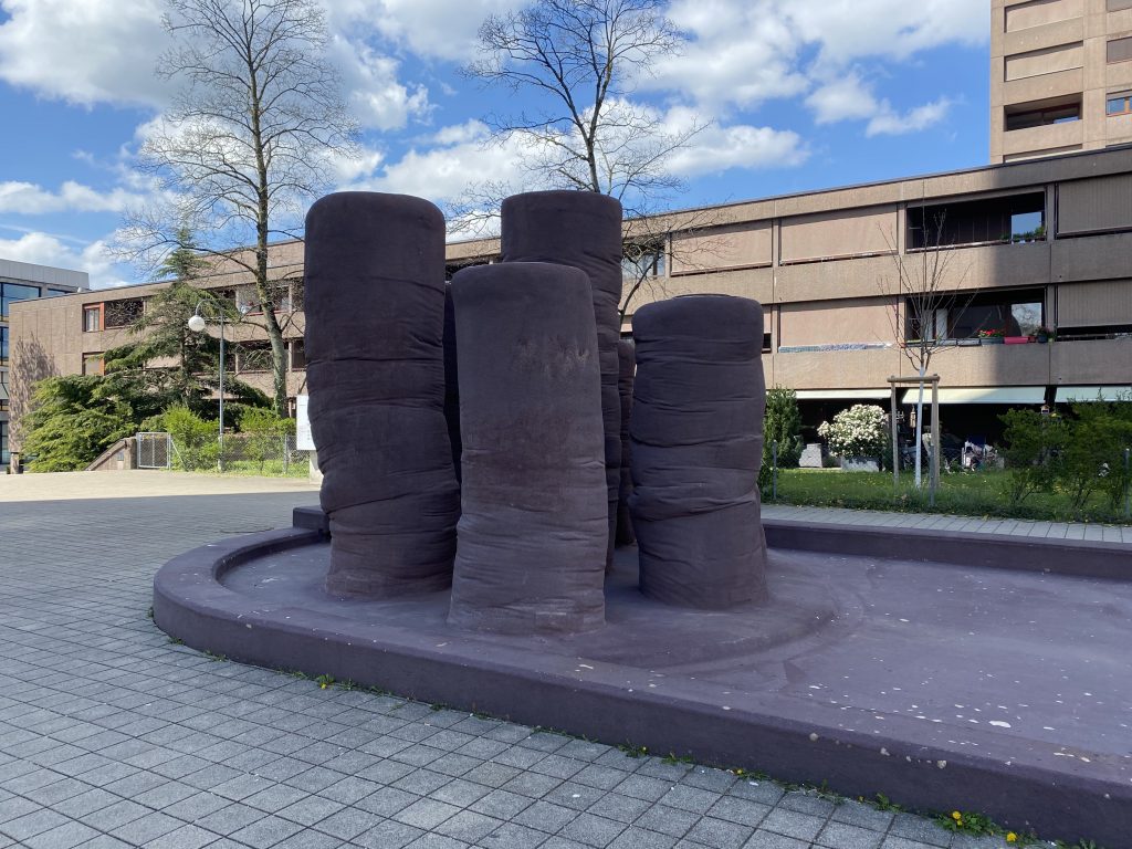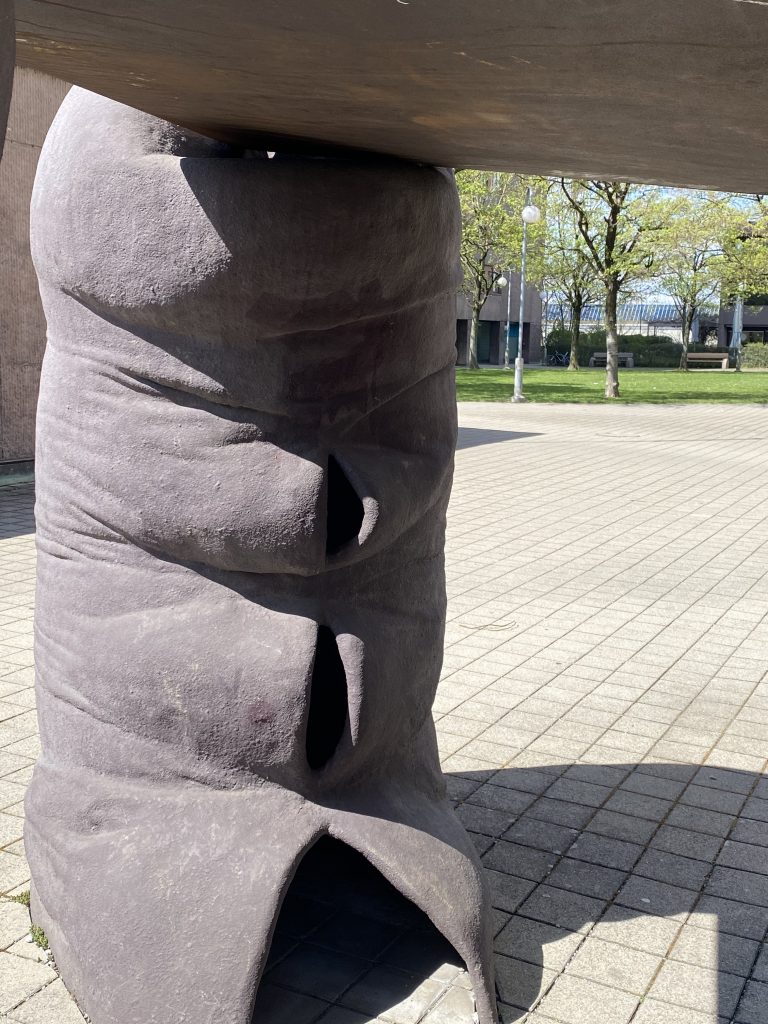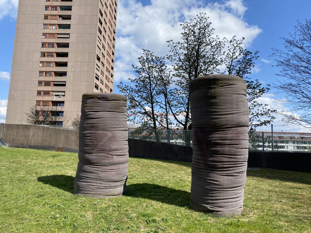 - säulenartigen, weich erscheinende Skulpturen mit rauer Oberfläche
